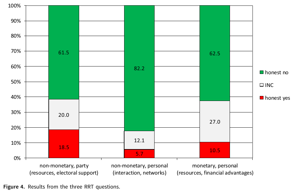 In @ejprjournal.bsky.social Pitsch & Wenzelburger estimate MP response to lobbying using randomized response technique to elicit honest answers by ensuring anonymity. Anonymity ensured by lumping answers with yes answers to other questions. Find small response to lobbying